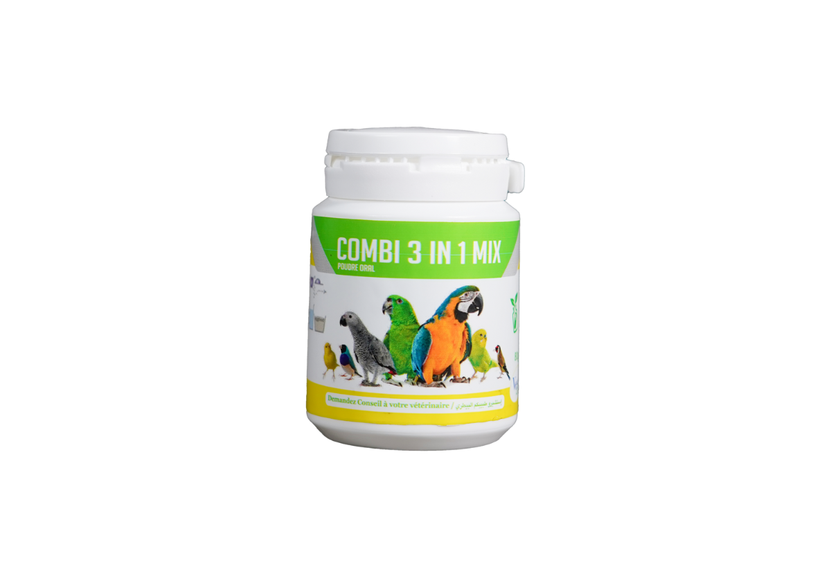 Combi Mix 3 in 1 est un produit naturel destiné au traitement de la coccidiose, les maladies respiratoires et l’amaigrissement des oiseaux. Il contient des vitamines, acides aminés, probiotiques et des extraits naturels à action antibactérienne et antifongique.